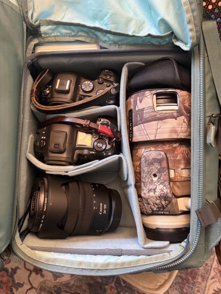 For the techies, my camera kit consists of a Canon R6, a Canon R5 mkii, an RF 24-105 F4, and an RF 100-500 F4.5-7.1. I also have a tripod, remote trigger, and variable filter. I wanted to pack other lenses, particularly my macro, but with weight restrictions on flights I opted for only two lenses.