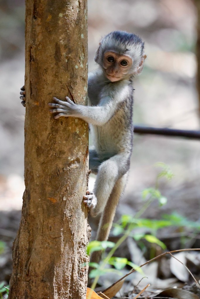 We started off the day with a short walk in the forest behind our hotel, the Tamarind Tree. This is the same forest that we came to on our first day of the trip that is home to a family of vervet monkeys. We found the monkeys this time further back in the forest. Some of them were very curious about us and some were wary.