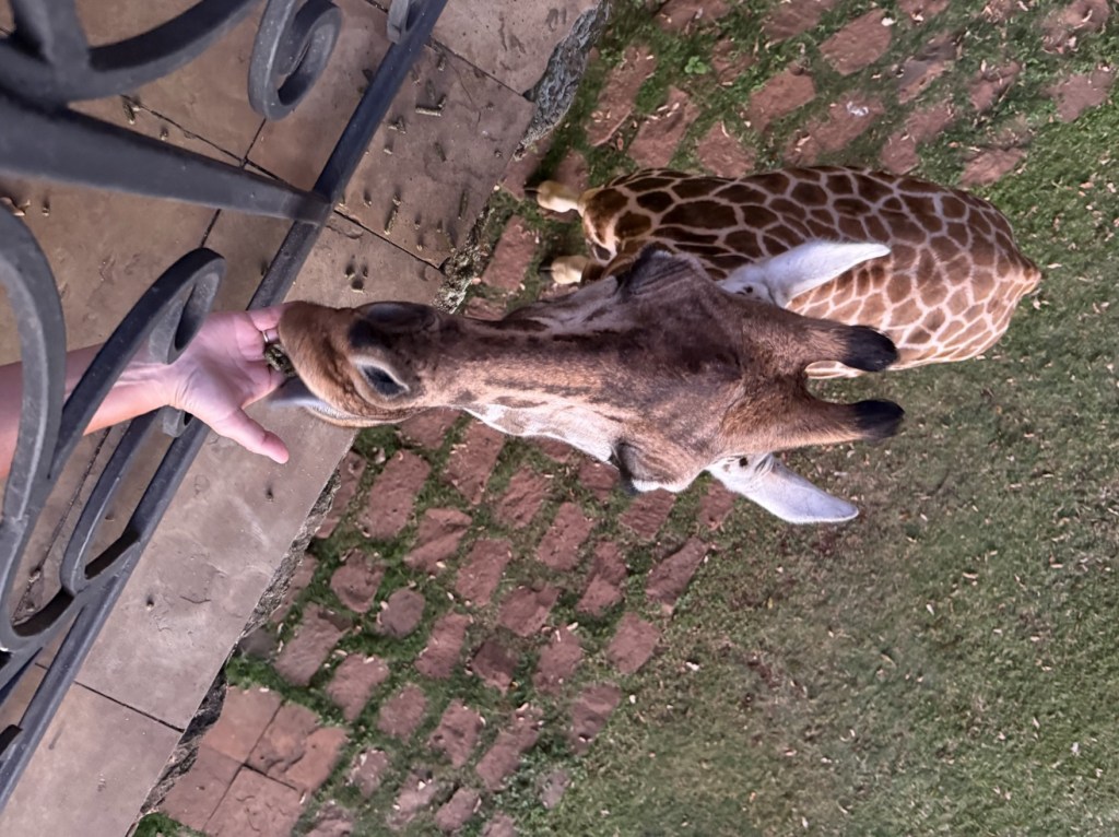 We headed to the breakfast room where we had a delicious breakfast. The giraffes hung around the manor and a baby even got the zoomies! I was too slow getting out my phone to take a video.