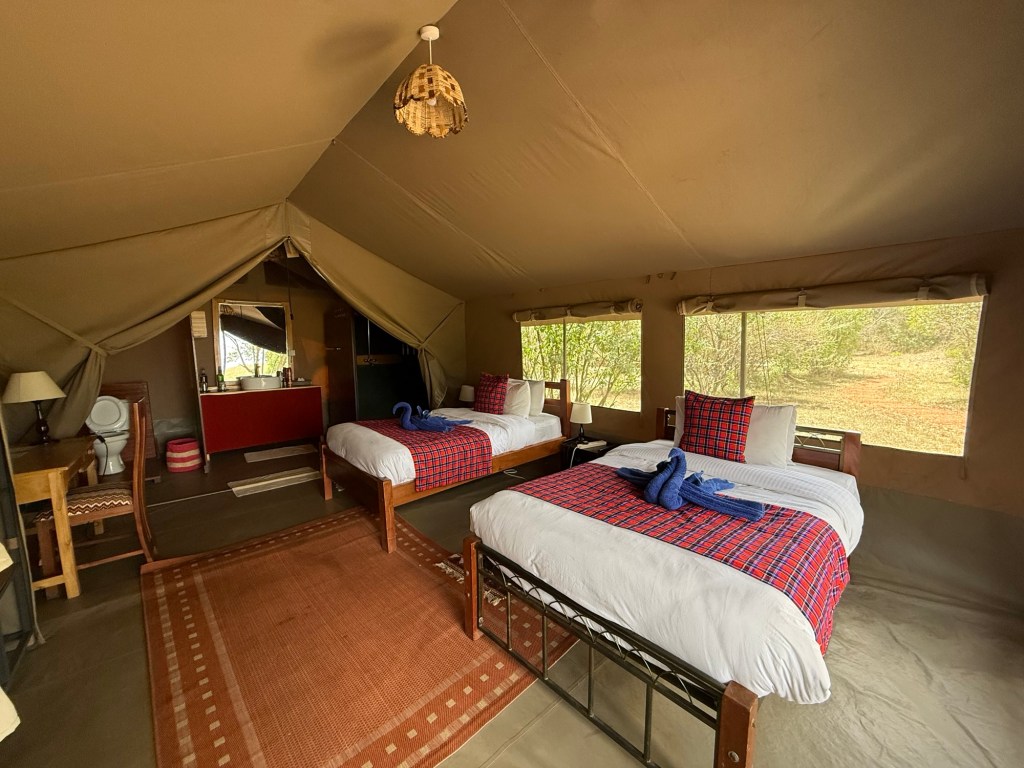 We are staying at Tembo by Jackson which is a bush camp where we stay in tents (definitely glamping, not camping!).