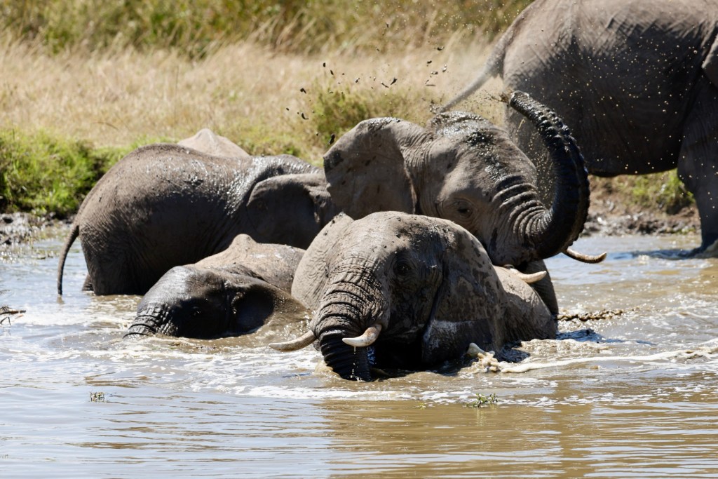 We continued our game drive in an area of Naboisho that had not yet explored. since it was just mom and I we were able to choose where we went and what we wanted to try and see. We stopped multiple times when there were birds close to the road and we waited for them to fly so I could attempt to photograph them in flight. We also crossed a river that had a bloat of hippos, including young ones. Many of the hippos had their heads above water so I was able to a that photograph more than just their ears and top of their snout. Driving back to camp we saw a bull elephant and there is a watering while just around the corner from “home” where we saw a parade of elephants getting a drink. Just as we arrived there was a hippo with four or five turtles on its back! It went underwater just as I tried to take a picture.