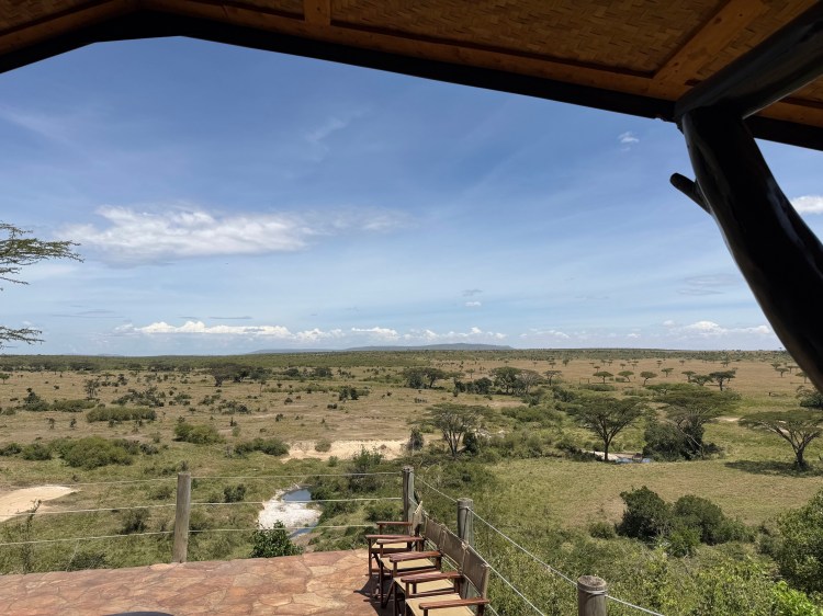 After leaving Tembo by Jackson and the Masai Mara we headed to the neighbouring Naboisho Conservancy. The Masai Mara is a national park, while conservancies are owned cooperatively by large groups of land owners. The parks have similar landscapes and wildlife. Saruni Wilderness Camp is located away from other camps in the conservancy. The tents are spread along the west side of a valley, giving a gorgeous view, especially of the sunrise. This camp had some of the best food of the trip. Each meal is three courses and there are a couple of options per course. The staff were happy to accommodate any dietary needs or preferences without sacrificing the quality of food.